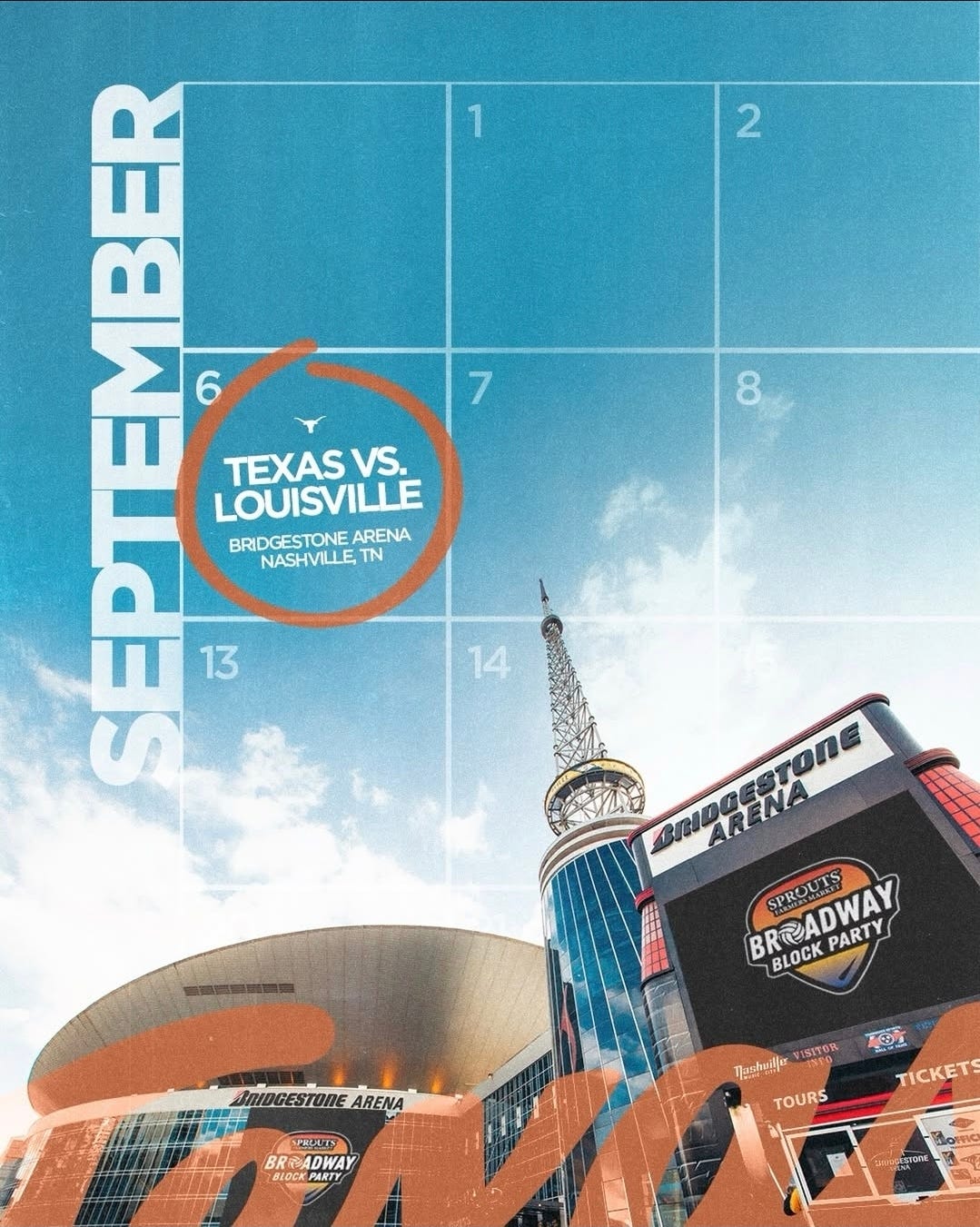 As a dual-fall-sport fan of the University of Texas, the timing works out rather well: a Labor Day trip to Nashville lines up with football’s season opener which fortunately only sees the Texas State Bobcats come to Austin, an easy skip in favor of the Ohio State game one week later. For extra volleyball content, Tennessee and Indiana will also be participating in the Block Party the same day at Bridgestone Arena.
